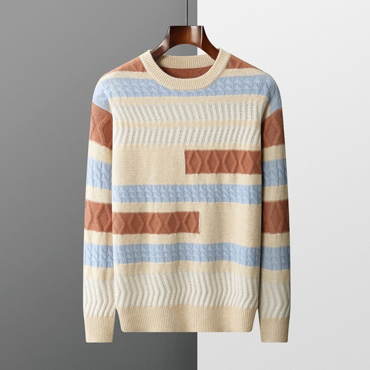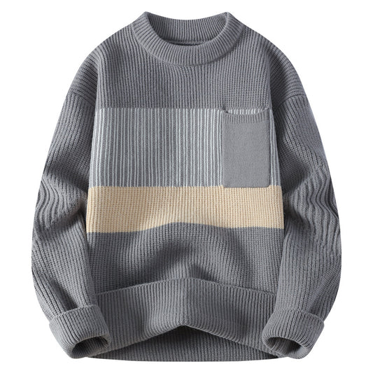 Korean Style Color-block Crew Neck Cashmere Sweater Men's Contrast Color