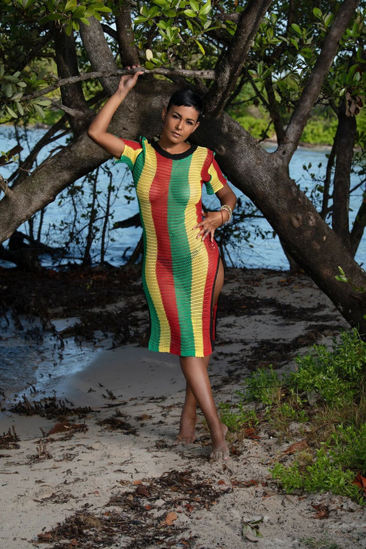 Knitted Short-sleeved Round Collar Dress Casual Beach Bikini Cover up