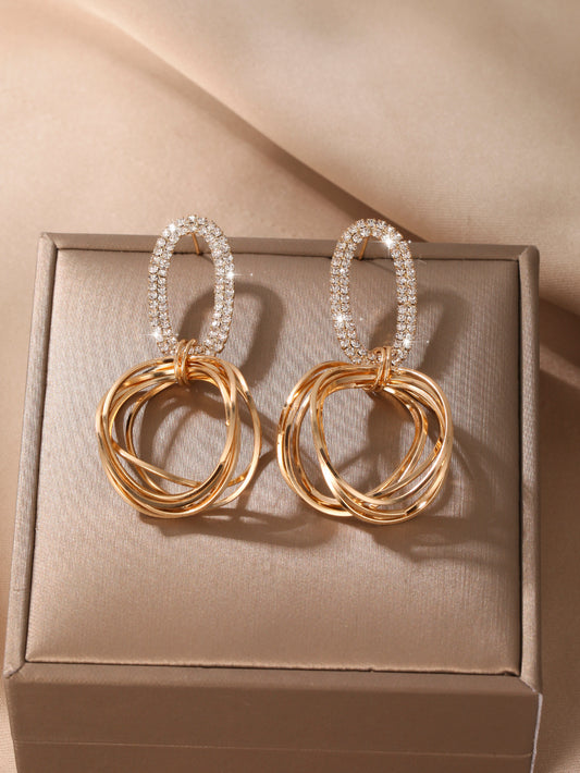 Korean Geometric Design Earrings, Oval Hollow Metal Irregular Circular Earrings, Fashionable And Versatile Earrings