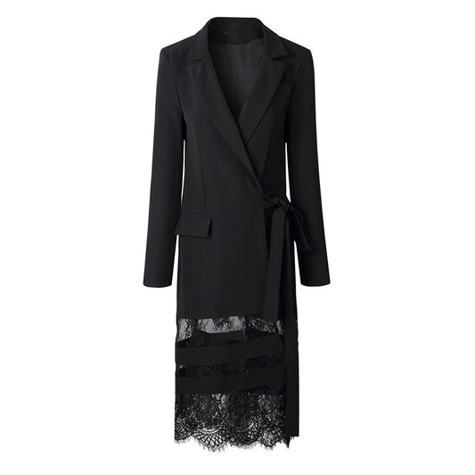 Lace Hollow All-matching Casual Lace Up Commuter Ins Style Long Shirt Dress