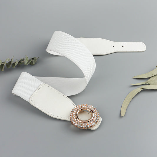New Ladies Diamond Inlaid Rhinestone Elastic Elastic Belt Simple Round Buckle Skirt Shirt Decoration Suit Belt