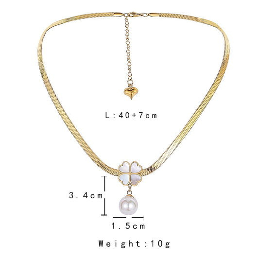 Stainless Steel Four-leaf Clover Pearl Shell Necklace