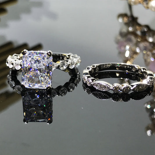 Square High Carbon Diamond 925 Sterling Silver Ring Set