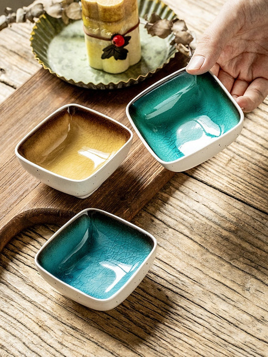 Square Crackle Glaze Ceramic Saucer Dish Soy Sauce Dish