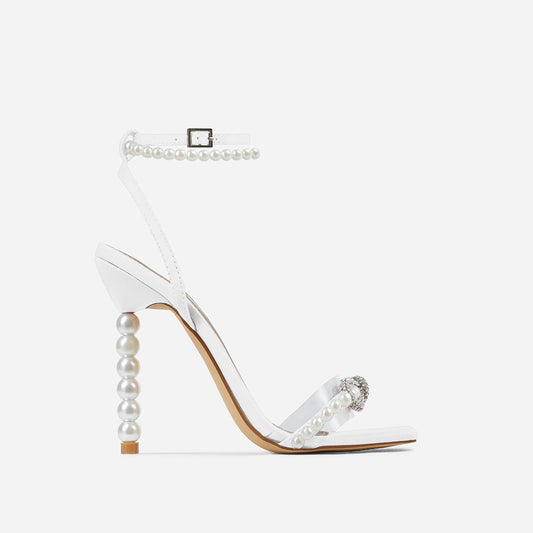 Square Toe Stiletto Heel Heels Rhinestone Bow Pearl Strap European And American Large Size Women's Shoes