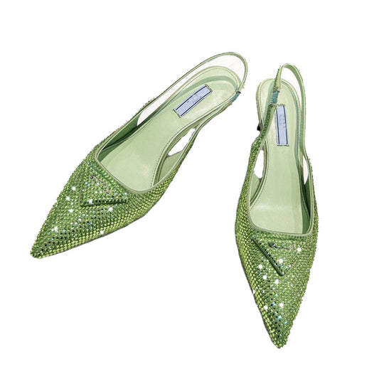 Women's Triangle Pointed Rhinestone Cat Heel Sandals
