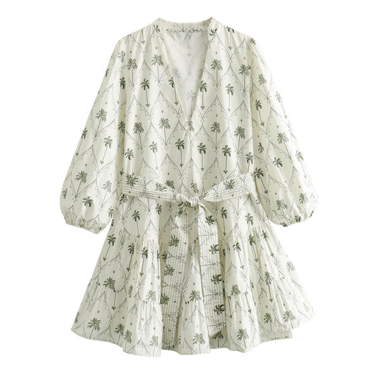 Women's V-neck Half Sleeve Midriff Outfit Printed Dress