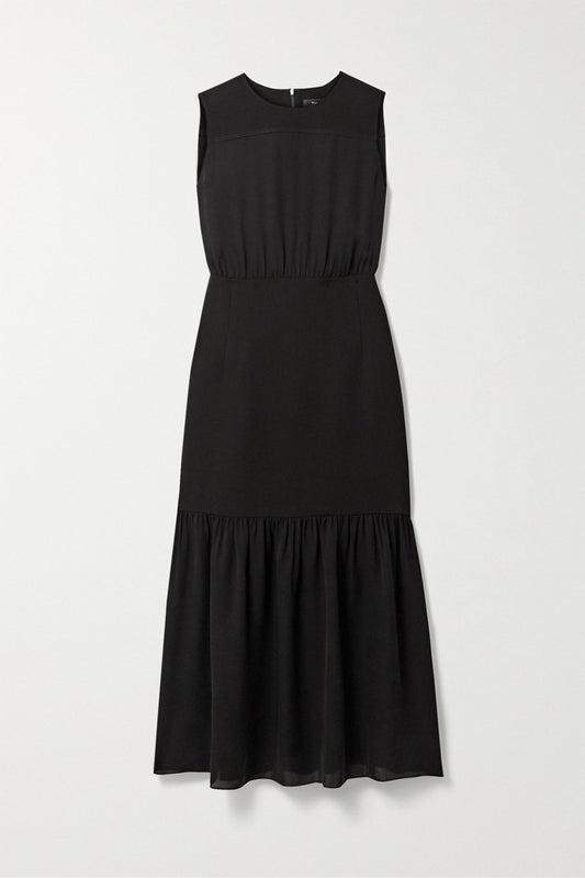European And American Round Neck Sleeveless Pleated Black Hip Dress For Ladies