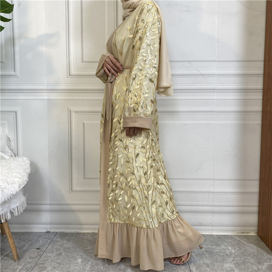 Middle East Dubai Embroidery Bronzing Lace Jalabiya Dress