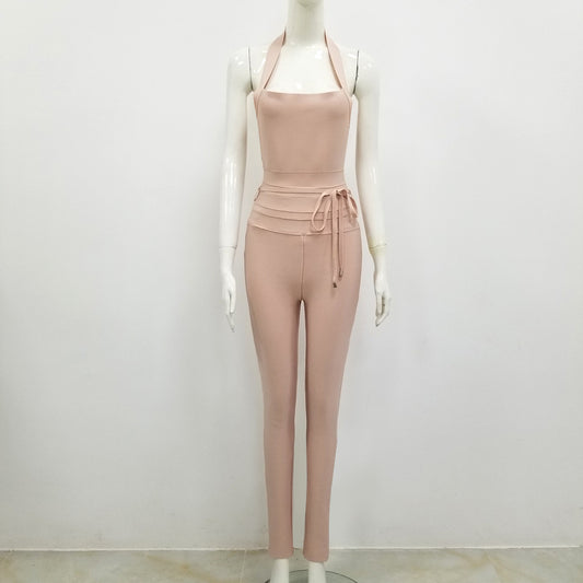 Bandage Dress Hanging Neck Pants Jumpsuit Belt