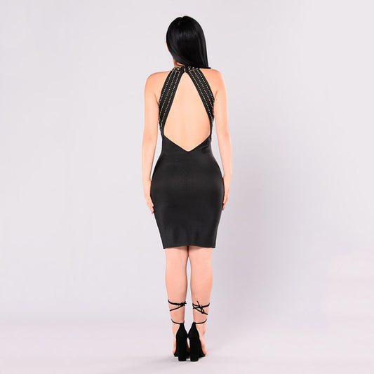 Backless Mesh Beading Nightclub Mini Sexy Halter Dress Bandage Dress