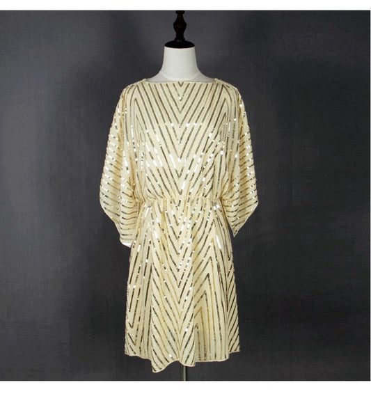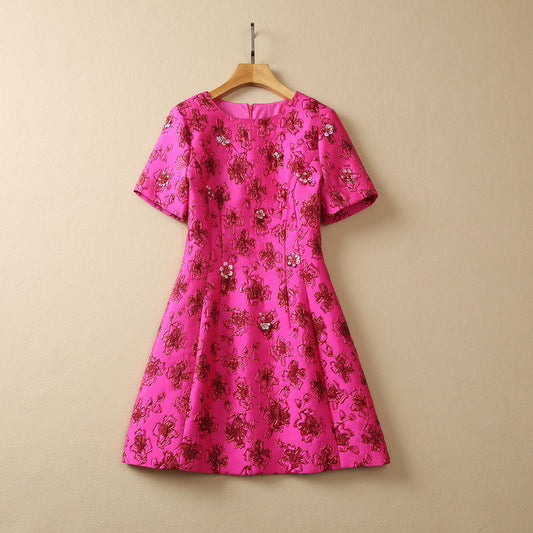 Brocade Jacquard Three-dimensional Sequin Waist Dress