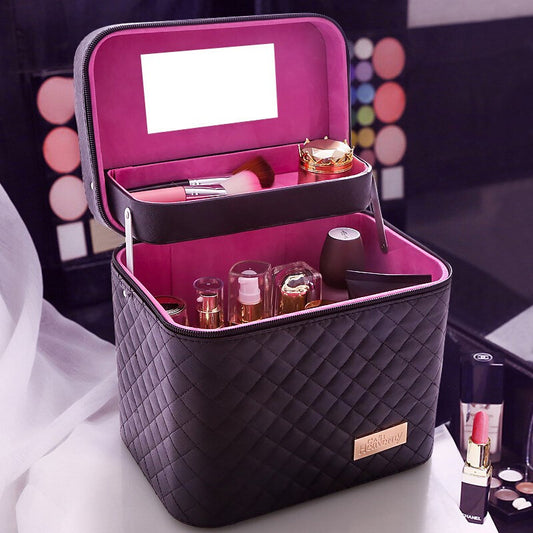 Bolsa de cosméticos de gran capacidad, caja de almacenamiento de cosméticos portátil para el hogar