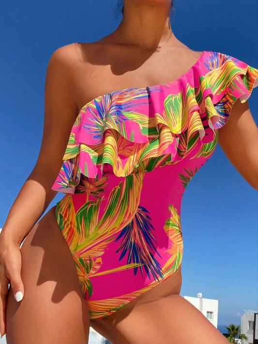 Traje de baño de una pieza con borde de hoja
