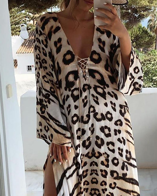 Vestido informal con abertura y estampado de leopardo a la moda