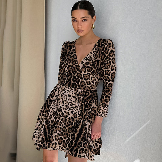 Vestido ajustado con escote en V y estampado de leopardo de Niche de manga larga para mujer