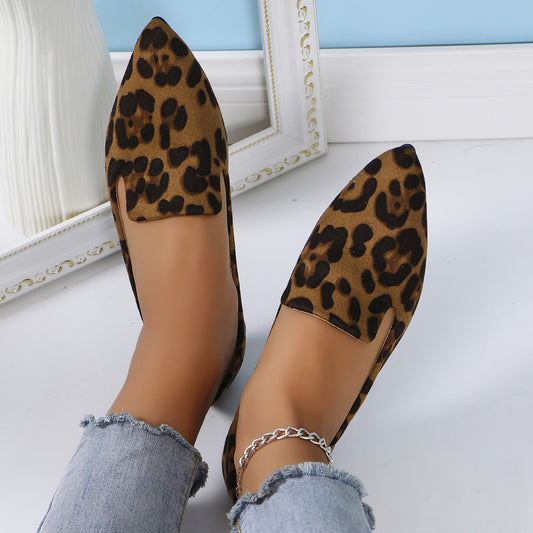 Zapatos planos con punta y boca baja con estampado de leopardo, informales
