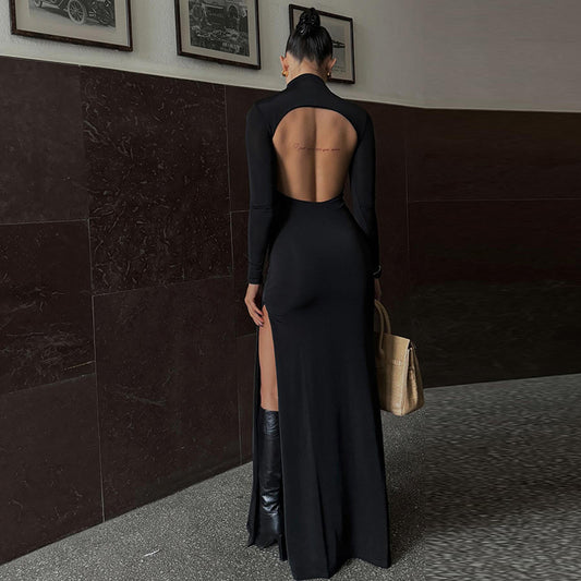 Long Sleeve High Neck Backless Dress