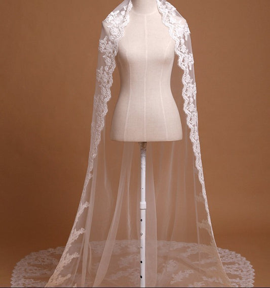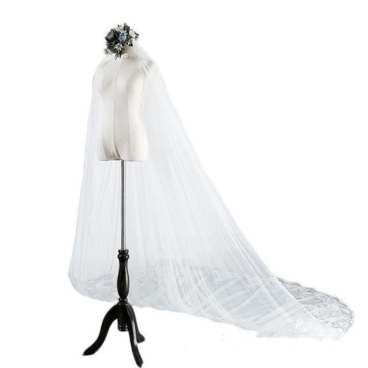Velo de encaje de cola larga