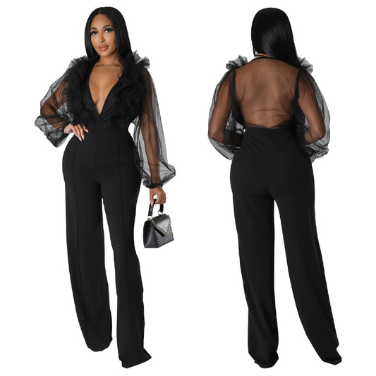 Mesh Lantern Sleeve V-neck Backless JumpsuitPrecio habitual RD$ 2,800.00Precio habitualPrecio unitario / por-