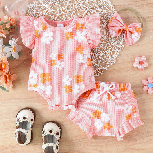 Conjunto de camiseta con estampado de árbol de coco y pantalones cortos elásticos con estampado de sol para bebés recién nacidos
