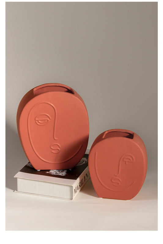 Adorno de jarrón de cerámica con cara abstracta y huella de mano nórdica