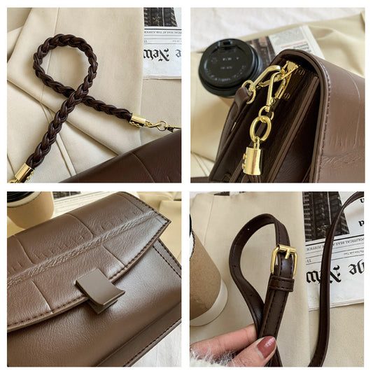 Bolso cuadrado pequeño tipo mensajero con un hombro, bolso femenino con patrón de piedra