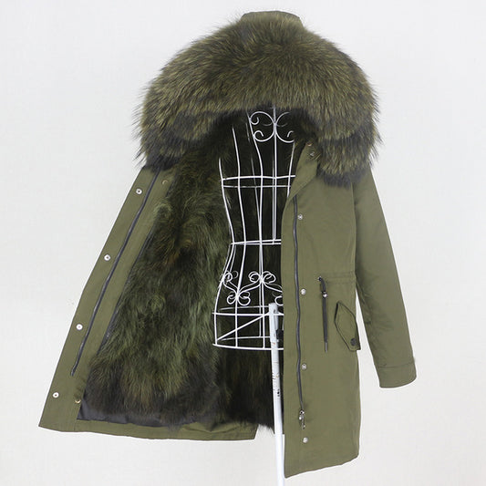 Chaqueta de invierno para mujer, abrigo de piel auténtica, parka larga, color natural