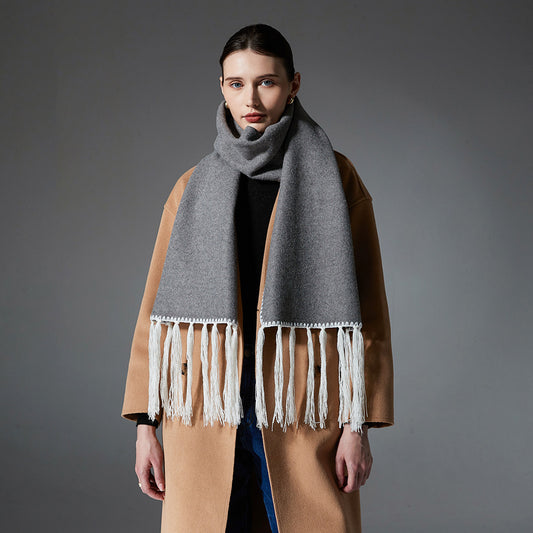 Winter New Double-faced Woolen Goods Solid Color Tassel Scarf