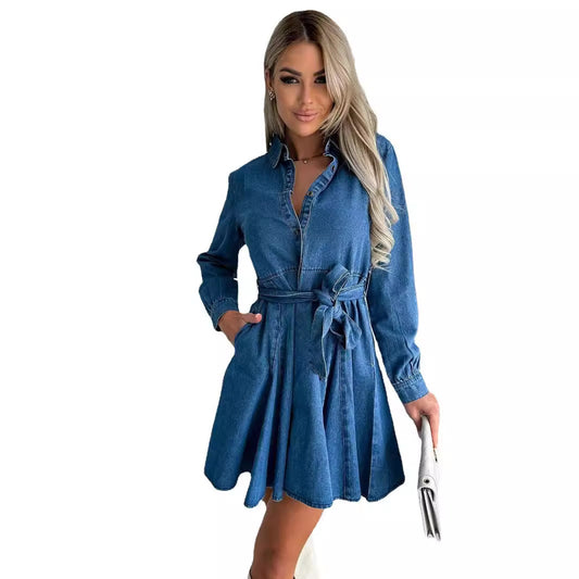 Falda vaquera tipo paraguas que adelgaza y ajusta la cintura de forma informal para mujer