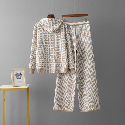 Women's Casual Fashion Zipper Coat & Trousers Knitting Suit