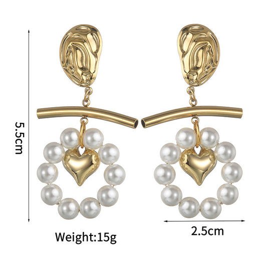 Pendientes de acero de titanio con borlas de perlas de moda