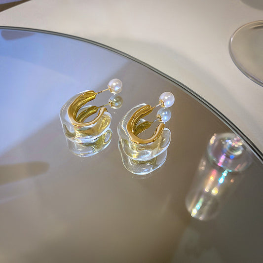 Diseño de temperamento de arete en forma de C con letra de perla de moda