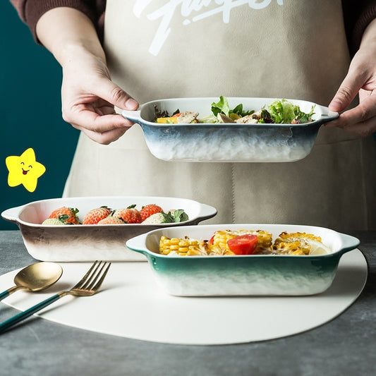 Bandeja para hornear de cerámica pintada a mano con flor de cerezo de estilo japonés