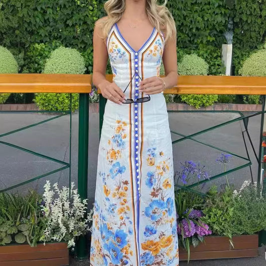 Vestido femenino con tirantes y estampado de playa