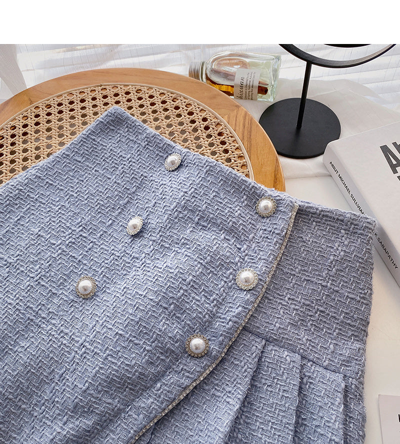 Irregular Pearl Buckle High Waist Pleated A- Line Skirt