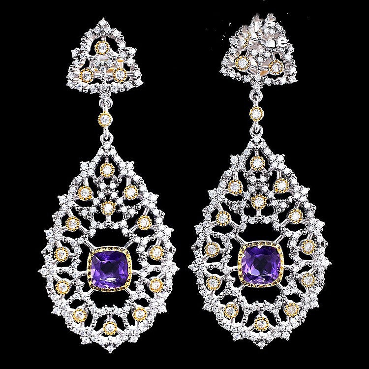 Pendientes colgantes de amatista natural chapados en plata 925 de lujo