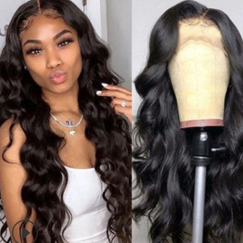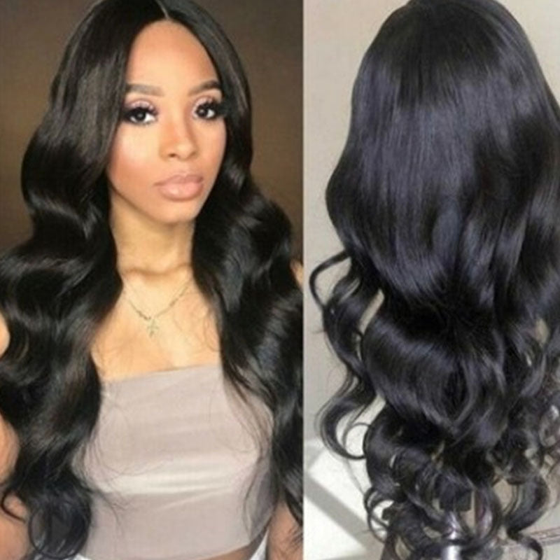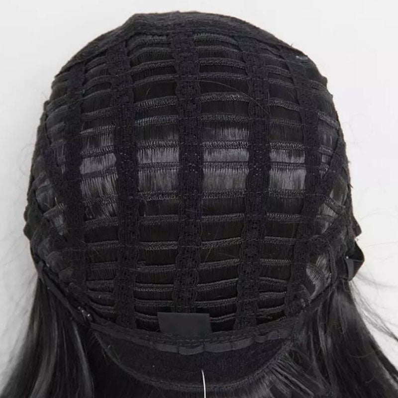 Peluca de onda grande negra dividida media con alambre de alta temperatura