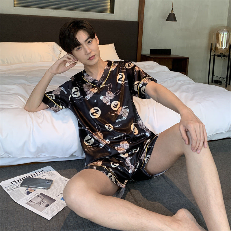 Pijamas para hombre de talla grande, talla grande, verano, cuello en V, seda de hielo, finos, para uso diario, para el hogar, tallas grandes, tallas grandes
