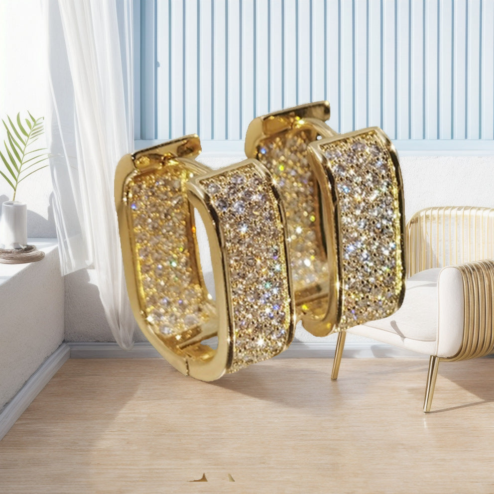 Pendiente de clip con microincrustaciones de circonitas de estilo lujoso y sencillo