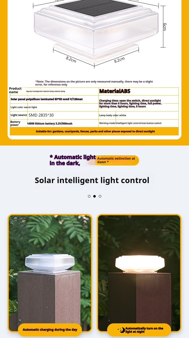 Clasificación de la especificación: lámpara de pilar blanca cuadrada de 4 LED [luz cálida], lámpara de pilar transparente cuadrada de 30 LED [luz cálida]]