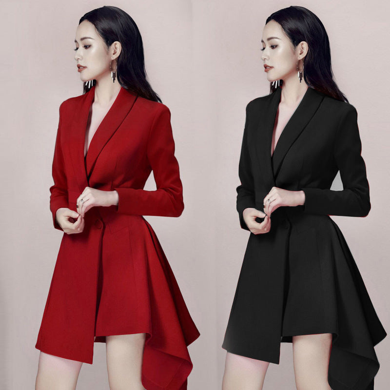 Vestido de chaqueta de traje irregular delgado y ajustado con temperamento para mujer