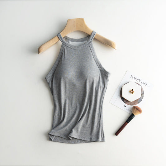 Nouveau gilet rembourré à bretelles spaghetti et dos nu de couleur unie