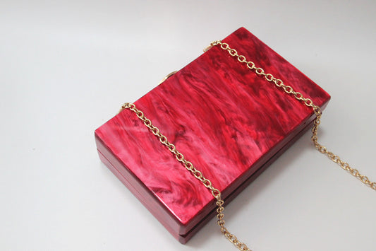 Sac messager à bandoulière style portefeuille pour femme, pochette de banquet en acrylique nacré rouge