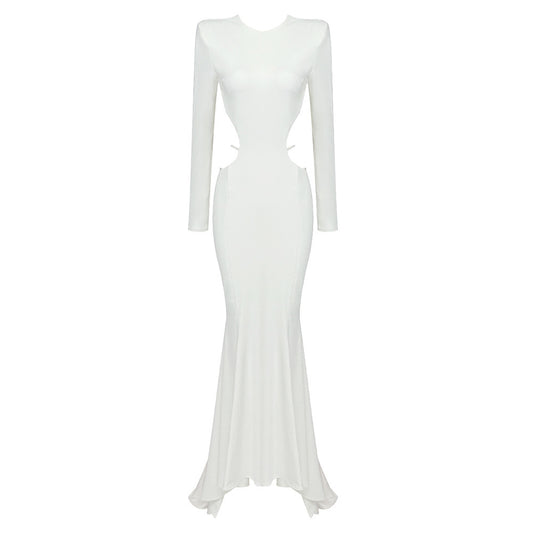 Jupe élastique à la hanche en queue de poisson avec surpiqûres blanches et décorations en diamant, nouveau style