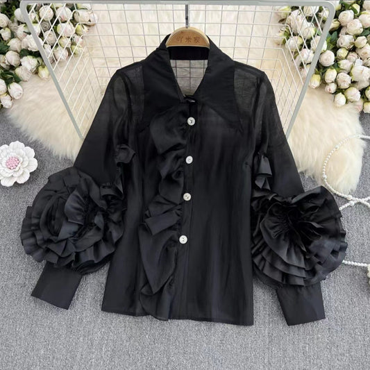 Haut à manches cloche et nœud papillon perlé au design de niche