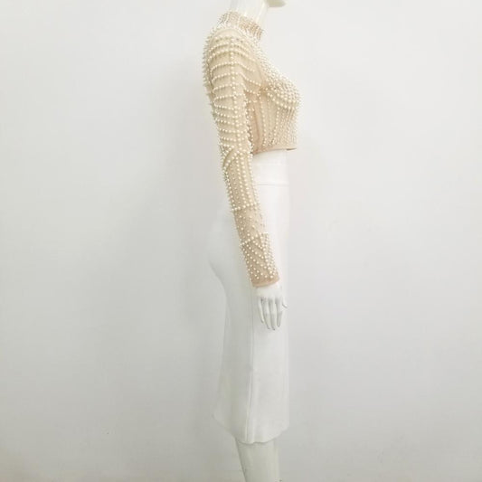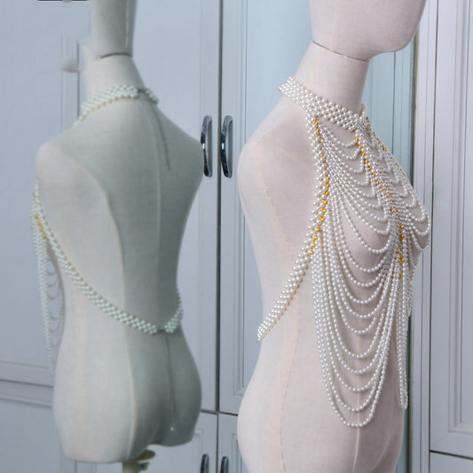 Robe de scène à chaîne et haut en perles exagérés pour défilé de Victoria's Secret