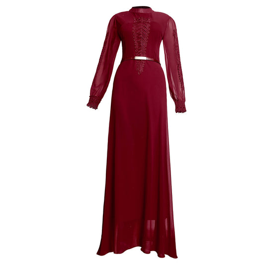 Robe en mousseline à manches longues et ourlet large grande taille