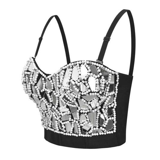 Corset clouté en plexiglas, vêtements de scène, caraco à paillettes, haut tube européen et américain neuf pour femmes