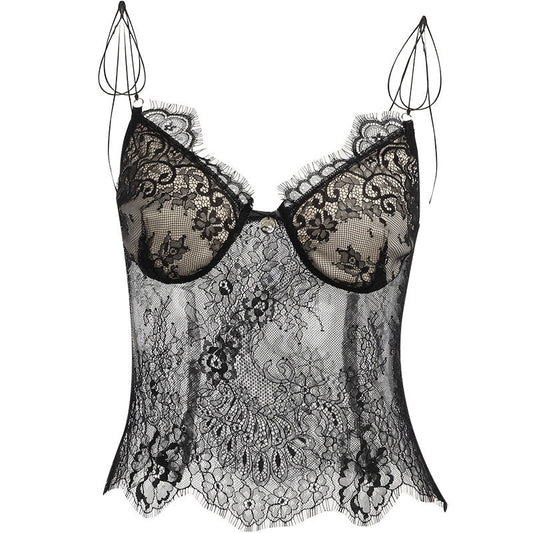 Gilet d'été transparent à col en V et décolleté en V en dentelle populaire